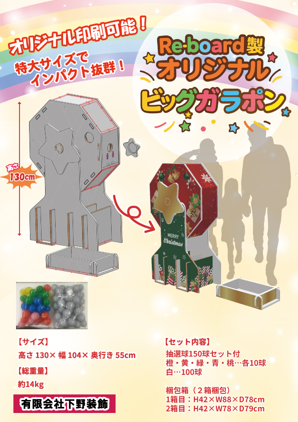 イベントや売場で強烈なインパクトを生む 「Re-board製オリジナルビッグガラポン」。