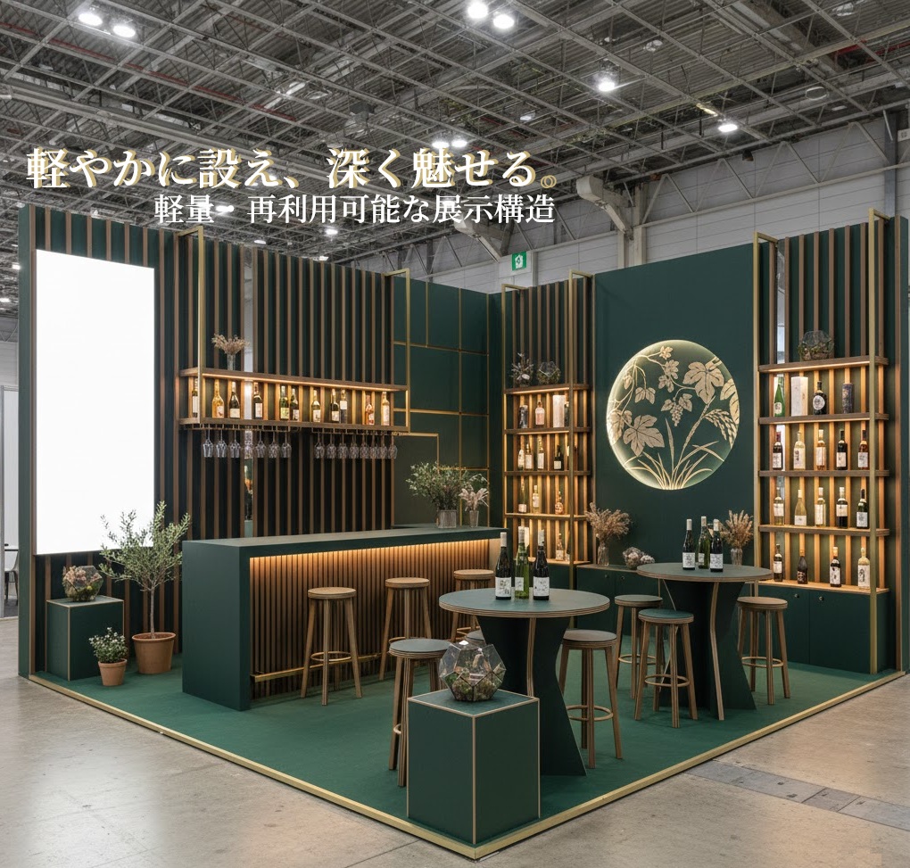 施工負担を抑えながら、ブースの印象をしっかり高める。それがRe-board装飾の特長です。